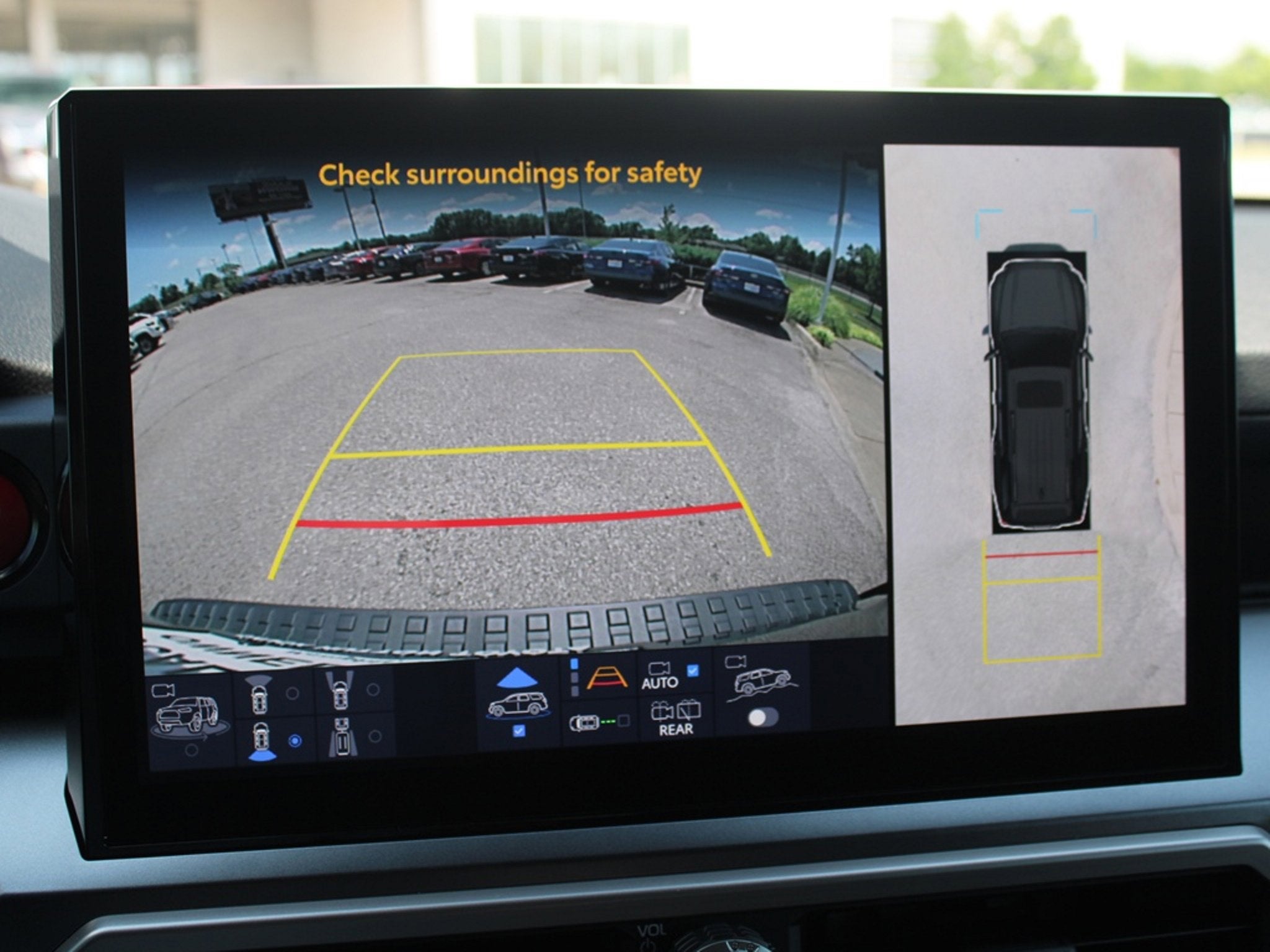 90. The Panoramic View Monitor does not provide a comprehensive view of the area surrounding your vehicle. Look around to confirm clearance. See Owner’s Manual for limitations.