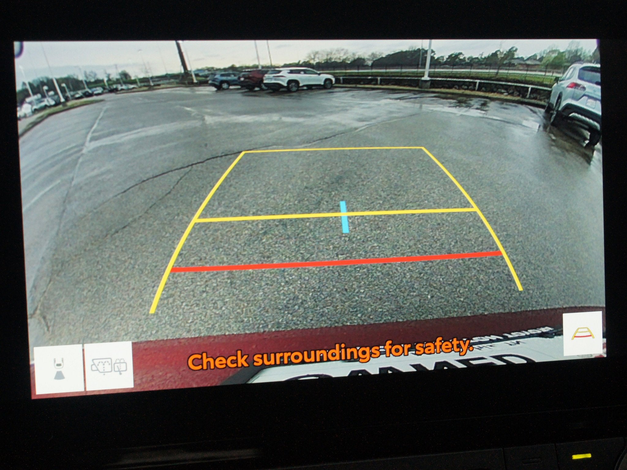 41. The Panoramic View Monitor does not provide a comprehensive view of the area surrounding your vehicle. Look around to confirm clearance. See Owner’s Manual for limitations.