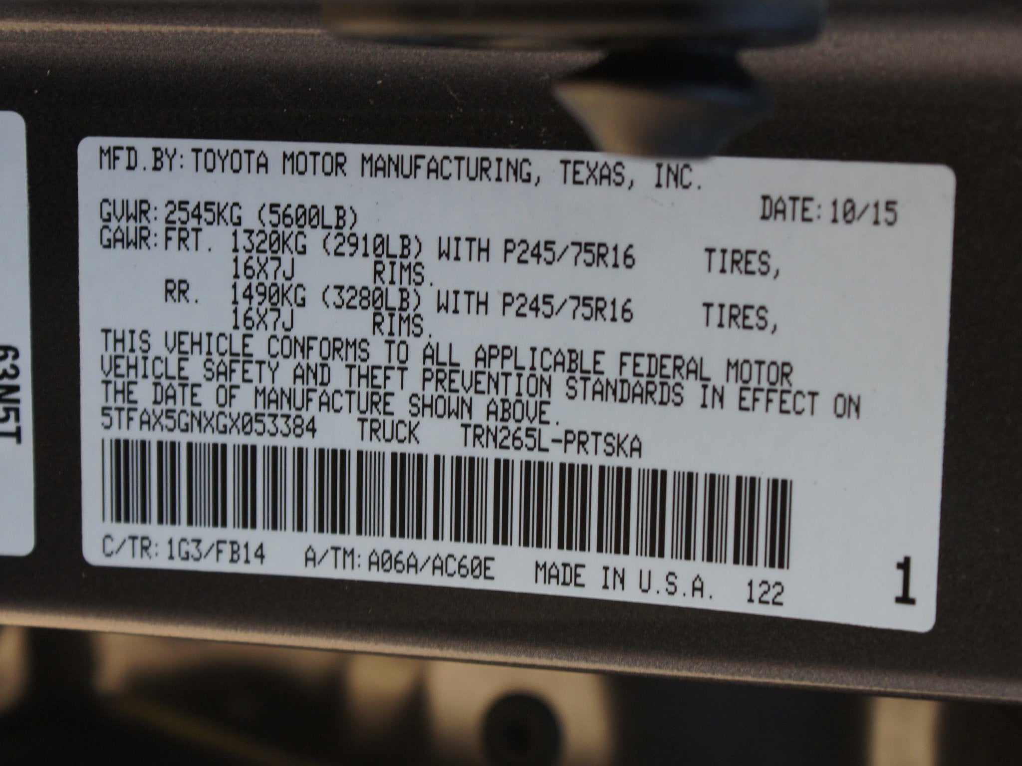 - Tires: P245/75R16 AS