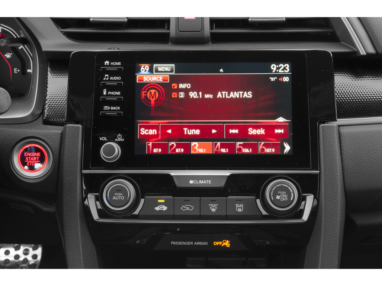 - Radio: 180-Watt AM/FM Audio System -inc: 8 speakers, 7-inch display audio w/high-resolution electrostatic touch-screen, knob and hard keys for primary controls and customizable feature settings, Bluetooth® HandsFreeLink, Bluetooth® streaming audio, radio data system (RDS), speed-sensitive volume compensation (SVC), 1.0-amp USB audio interface port in center console, Apple CarPlay integration, Android Auto integration, HondaLink, SMS text message function, 1.5-amp USB smartphone/audio interface in lower front console, illuminated steering wheel-mounted audio controls and integrated rear-window antenna