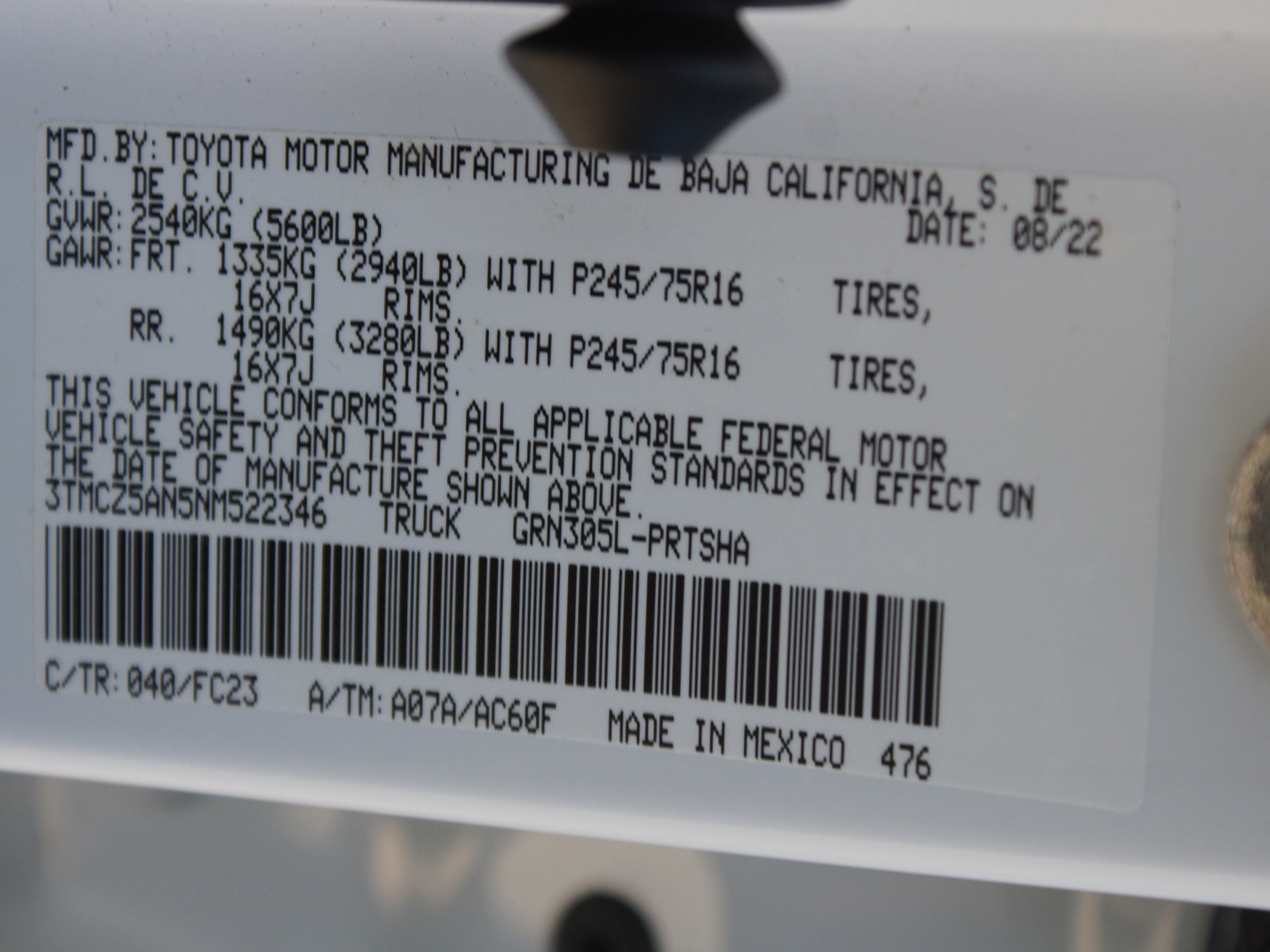 - Front Tire Size: P245/75SR16