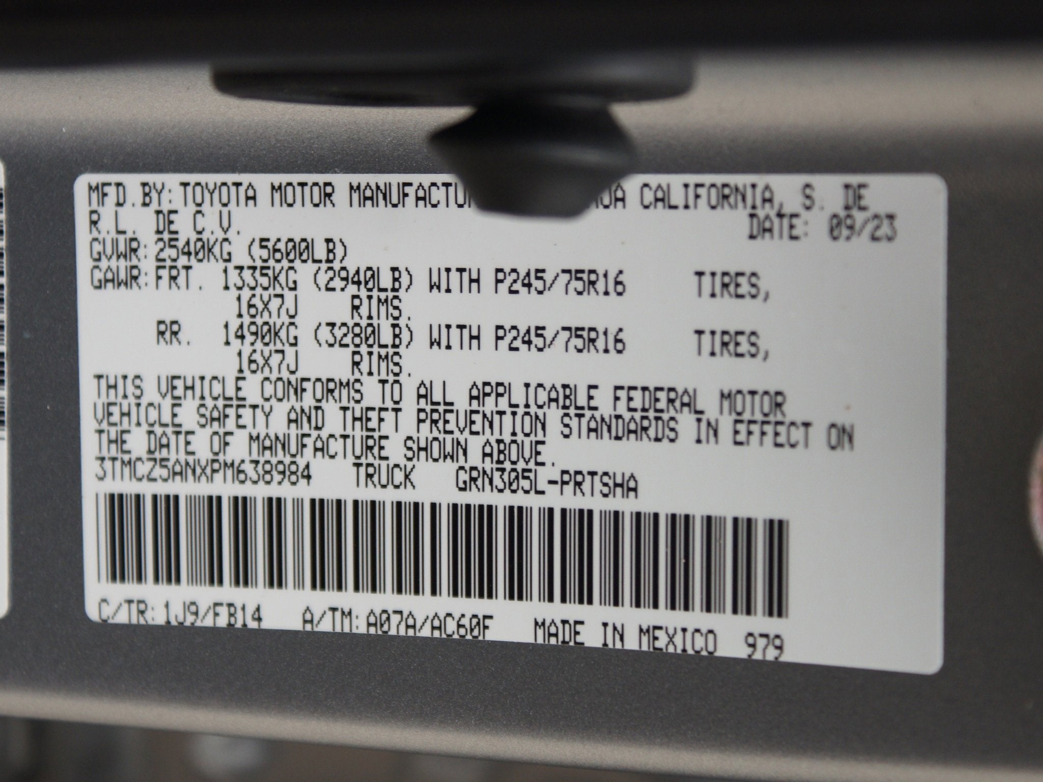 - Vehicle Name: Toyota Tacoma 4WD