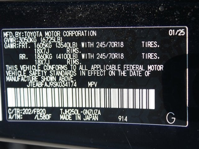 - Front Tire Size: P245/70HR18